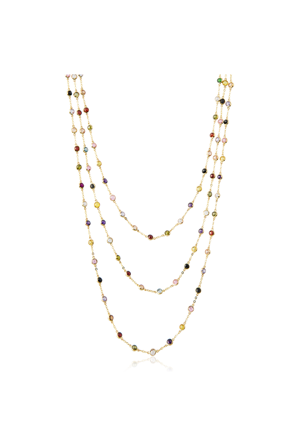 Altın Rengarenk Yuvarlak 3 mm Renkli Taşlı 3'lü Boyunluk